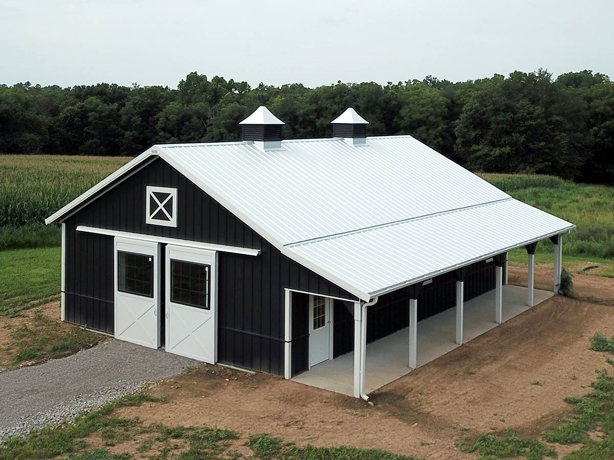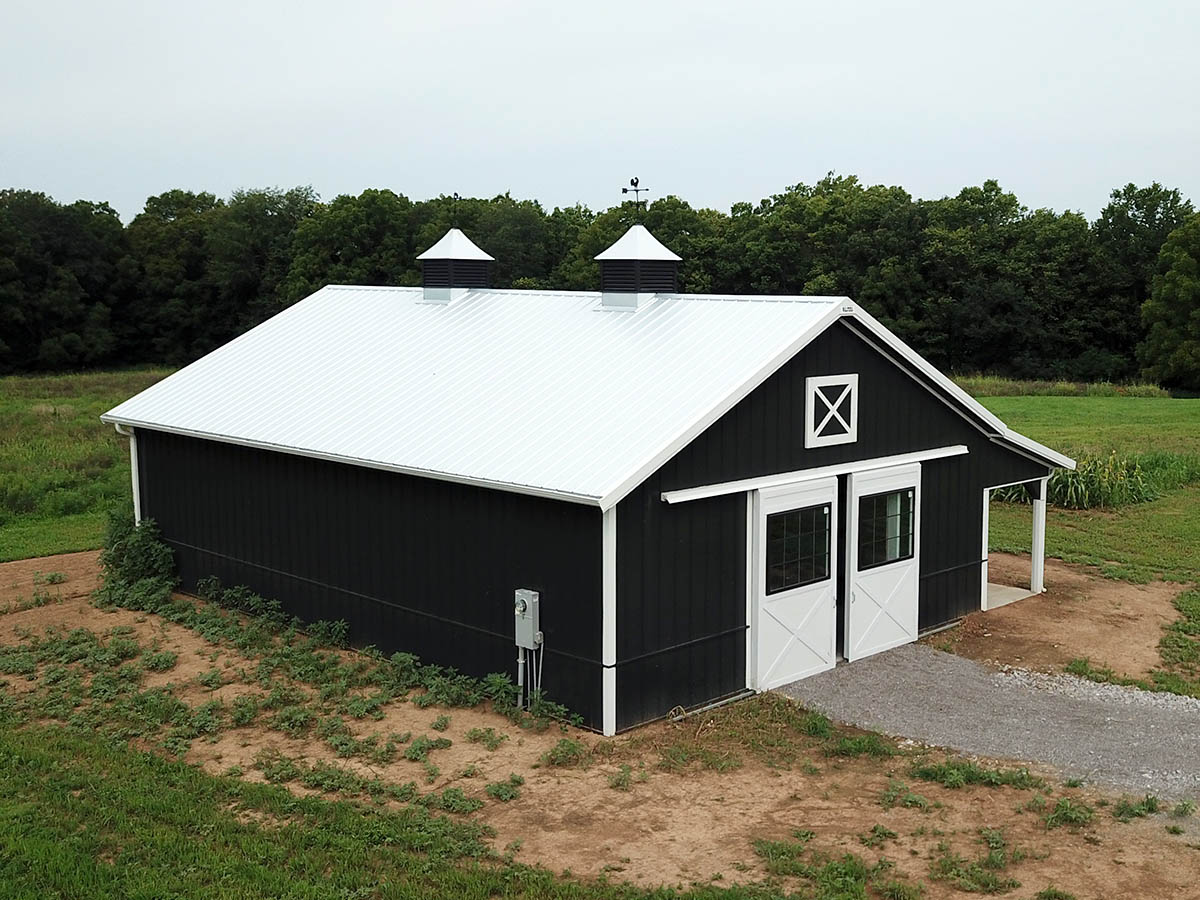 • 30′ × 45′ × 10′ stall barn