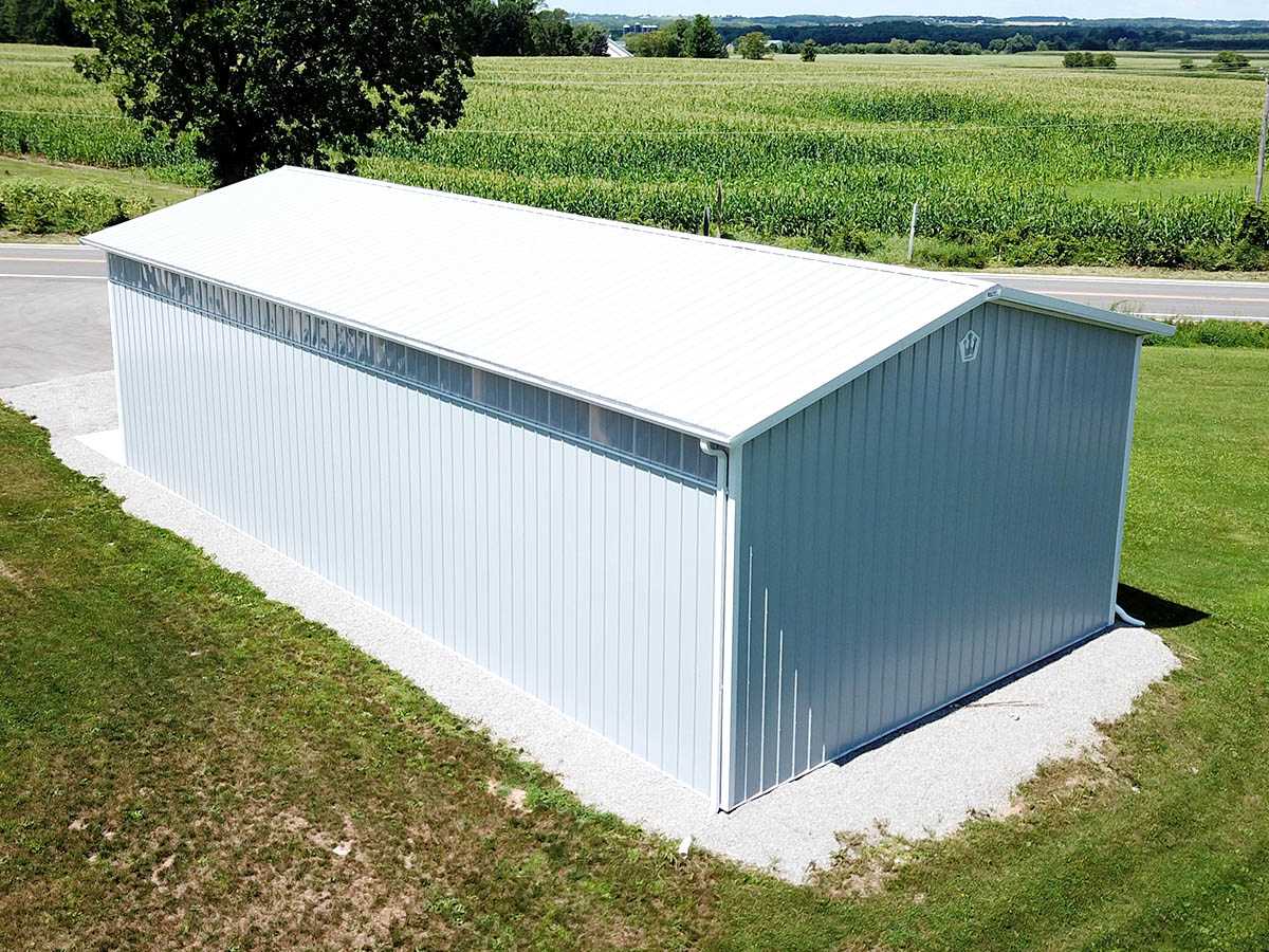 • 30′ × 63′ × 16′ post-frame storage building