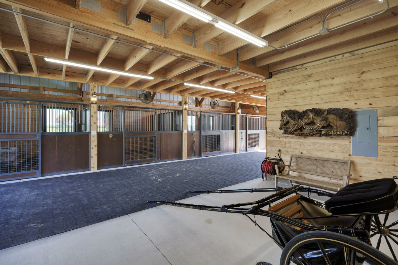- Boarding barns with wash bays, tack rooms, and hay lofts