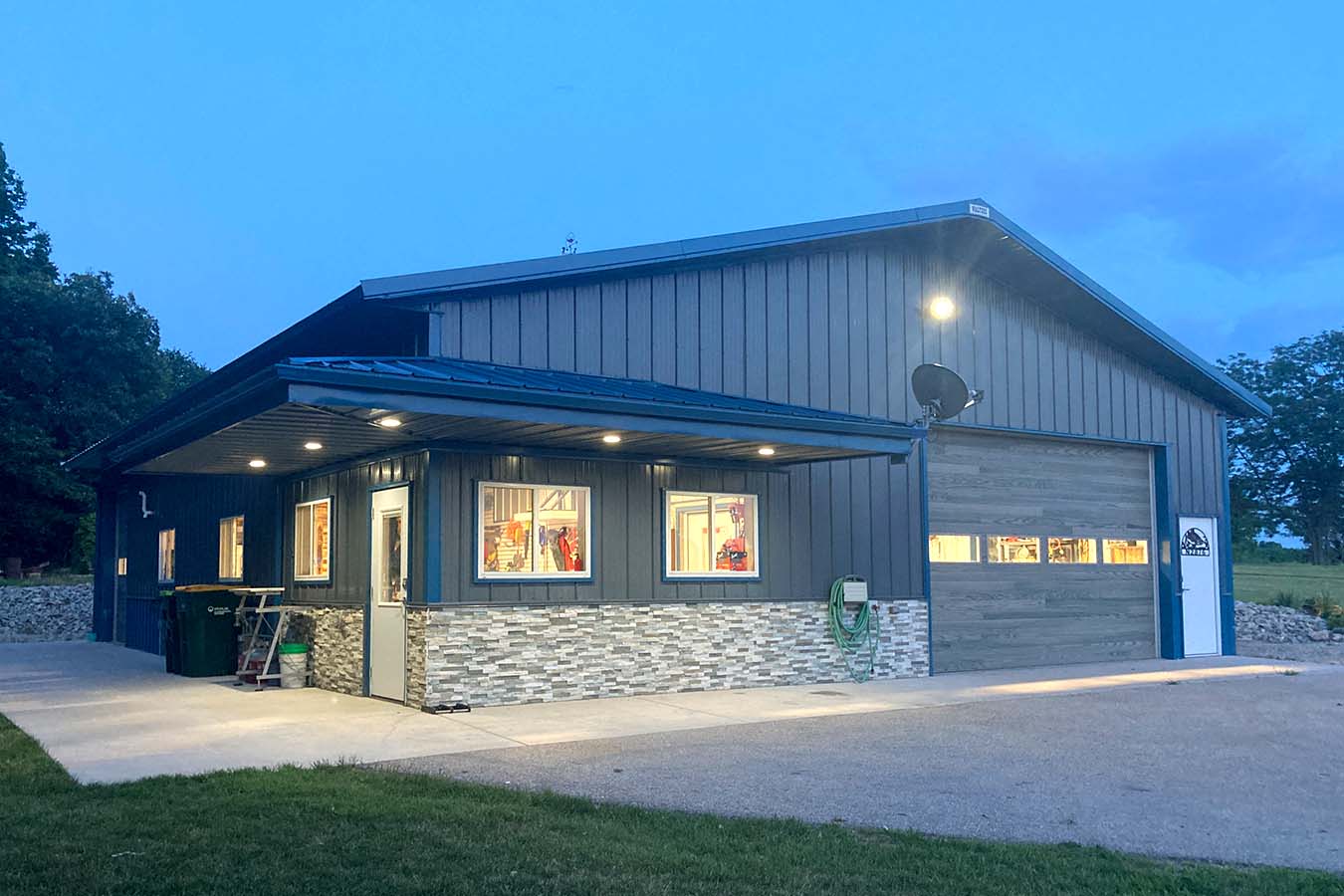 Set on the eastern shores of Lake Winnebago in Chilton, Wisconsin, this 42′ × 56′ custom post-frame garage is more than just storage, it’s an extension of lakeside living. Designed to complement the owner’s nearby home, the building combines practical vehicle and watercraft storage with the relaxed comfort of a personal getaway space.