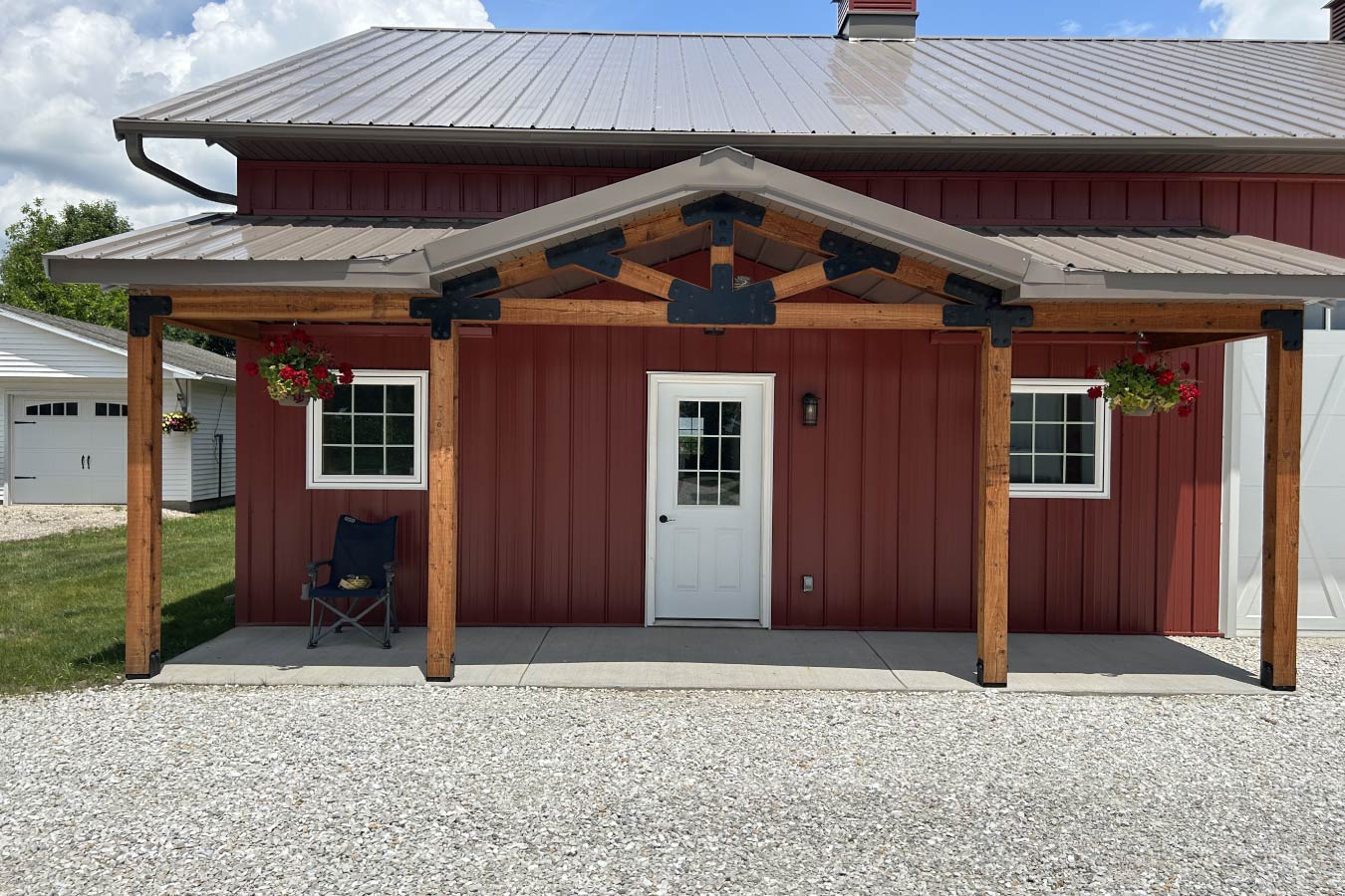 This 40′ × 66′ pole barn workshop in Auburn, Illinois, is proof that functionality and comfort can coexist under one roof. Built by Cornerstone Construction, a trusted Walters Buildings dealer, the project was designed around two complementary priorities, efficiency up front and relaxation out back, creating a balanced, purpose-built space for work and unwinding alike.