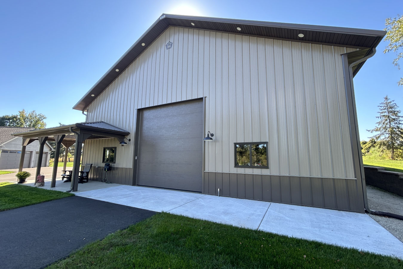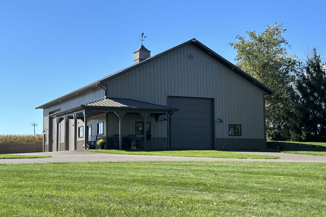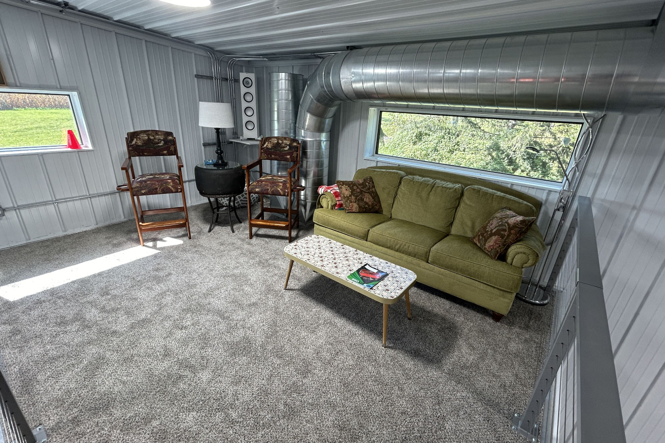 - Heated pole barn garages with lounge or office space